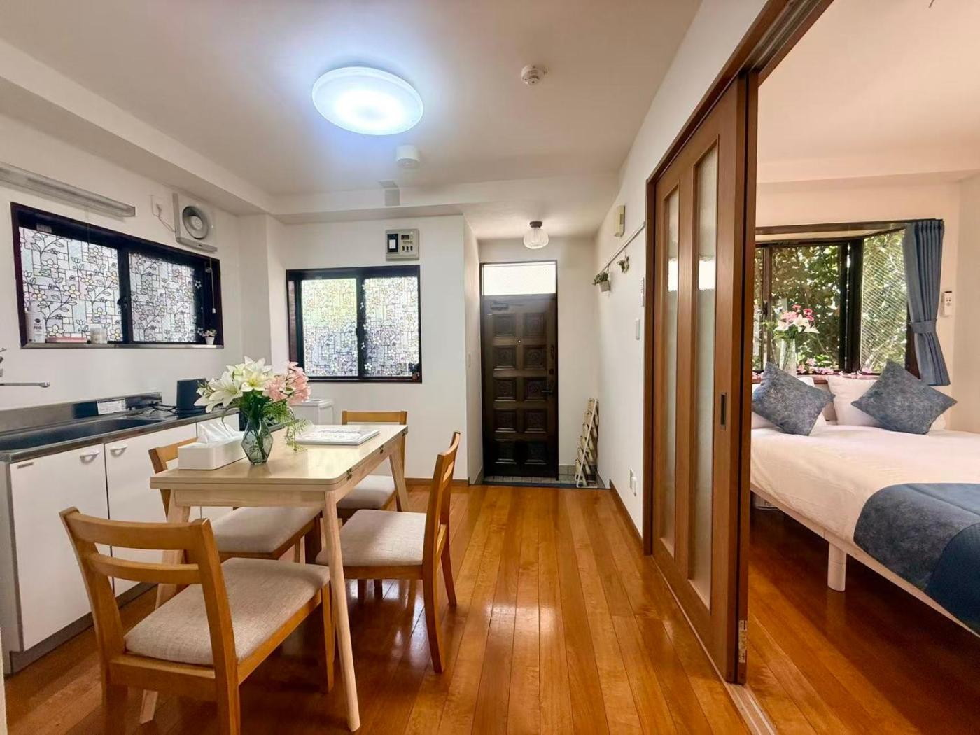 Two-Bedroom Apartment. Boasting a private entrance, this air-conditioned apartment comes with a kitchen, 2 bedrooms and 1 bathroom with a shower and a hairdryer. Meals can be prepared in the kitchen, which features a stovetop, a refrigerator, kitchenware and an oven. Featuring a terrace, this apartment also features a washing machine, tatami and a flat-screen TV. The unit has 1 bed and 3 futons.